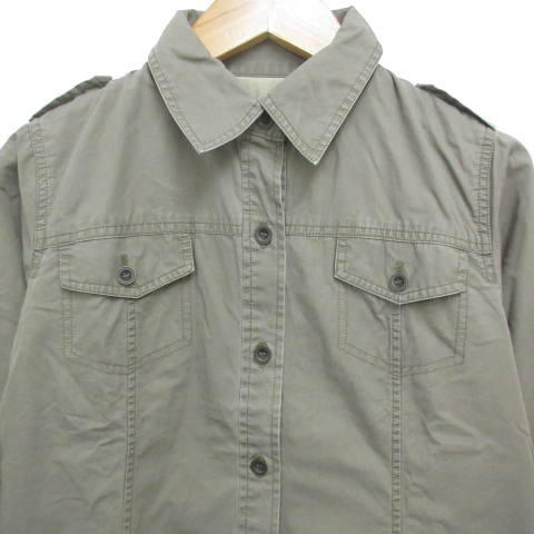 シップス SHIPS ミリタリーシャツ カジュアルシャツ 七分袖 五分袖 2way 無地 S カーキ /FF35 レディース