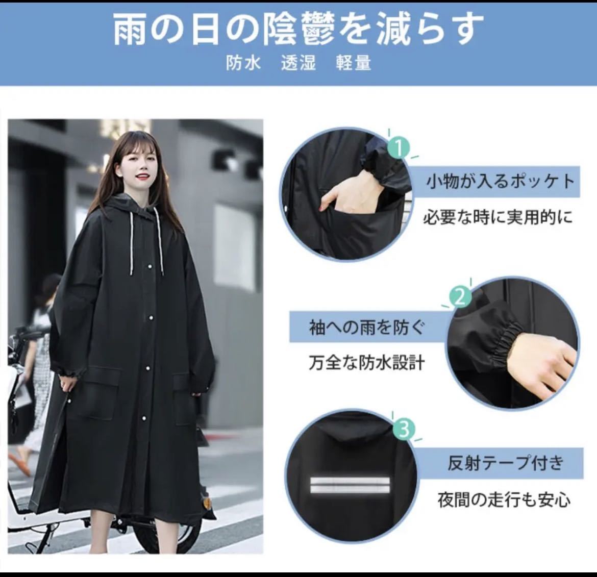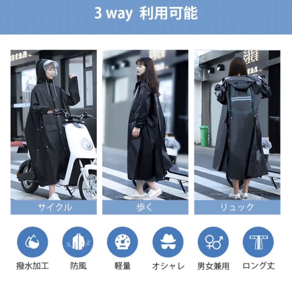 レインコート 自転車 通学 通勤 リュック 保育園 レインポンチョ 二重ツバ 反射テープ アウトドア キャンプ 防災 バイク 野外フェスレインコート 安全ロング丈 クリア視野 リュック対応 ランドセル対応 ポケット付 収納袋付き
