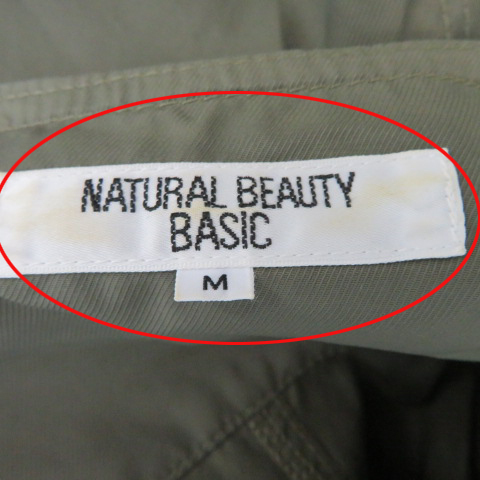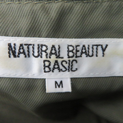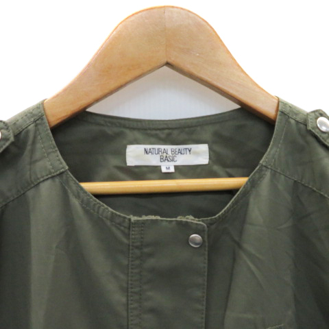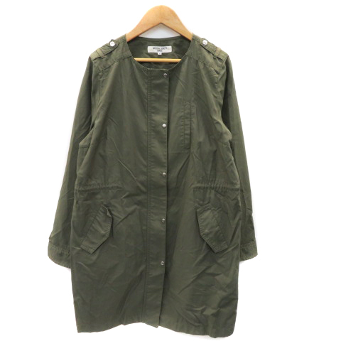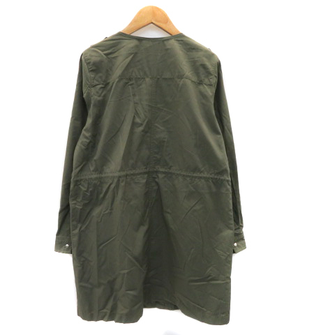 ナチュラルビューティーベーシック ミリタリーコート スプリングコート ノーカラーコート ロング丈 ジップアップ 無地 M カーキ レディース