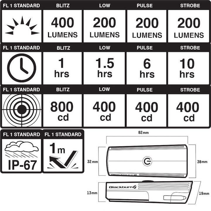 点灯最長時間:BLITZ:1時間 / ロー:1.5時間 / パルス:6時間/ ストロボ:10時間