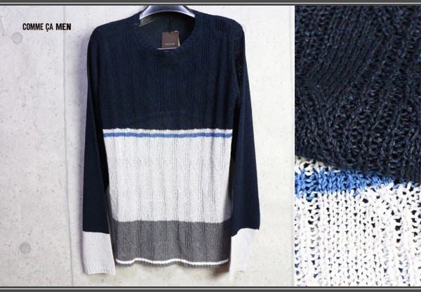 コムサ系のメインブランド、コムサメン(COMME CA MEN)の和紙(マニラ麻)クルーネック サマーセーター。