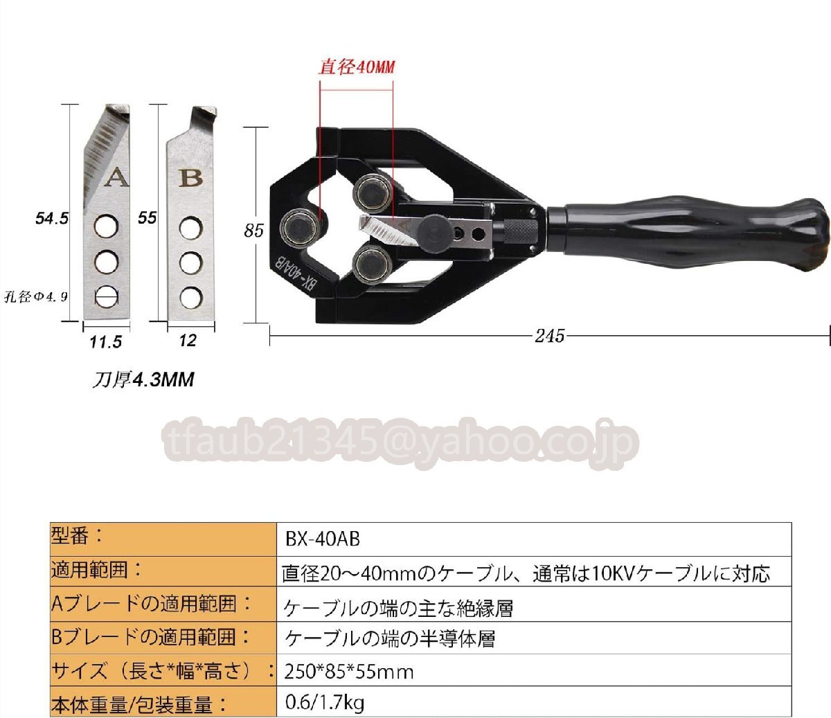 【ケーリーフショップ】ケーブルストリッパー ケーブルかわむき機 直径20~40mm 10kv 大口径ケーブル対応 (A刃+B刃)