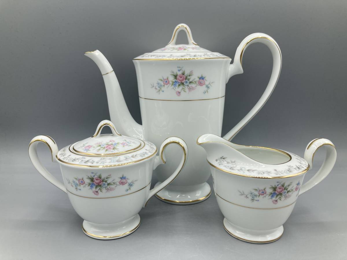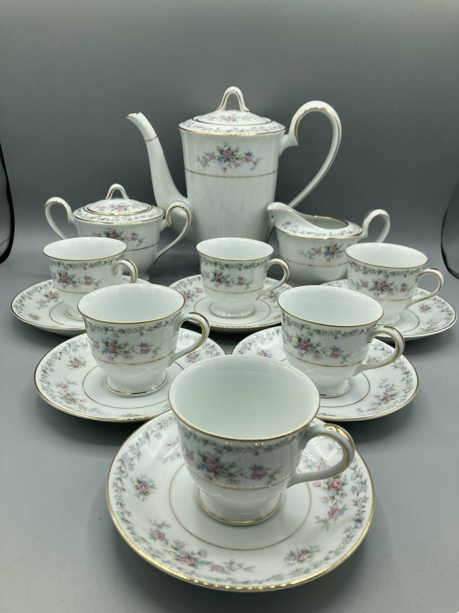 里帰り ノリタケ 6人用 Burton 花 コーヒーポット / ティーポット デミタス カップアンドソーサー クリーマー シュガーポット (12)