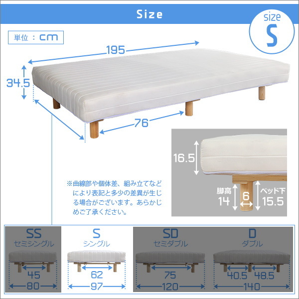 | 商品説明 | 商品名:脚付きロールマットレス ユニテ・ドゥ- ネイビー色 シングルサイズ 商品サイズ:(約)幅97x奥行195x高さ34.5cm 商品重量:27.2kg 梱包サイズ (2-1) (約)幅102×奥行28×高さ28cm (2-2) (約)幅90×奥行20×高さ24cm 梱包重量:29.2kg 素材 張り材:ポリエステル100% クッション材:ポケットコイルスプリング、ウレタン、フェルト、不織布 本体:LVL、パイン(脚) 耐荷重140kg お客様組立商品 商品画像は、デジタルカメラで撮影しておりますので、 お客様のPCモニターやインターネット環境の違いにより、 多少色合いが違って見えることが御座います。 予めご了承下さい。 |