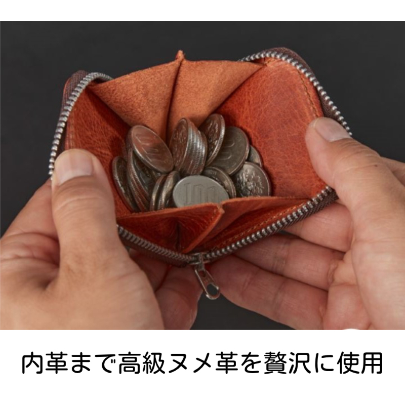 一般的にコインケースの内側は布地のものが多い中、この商品はすべて革で仕立てられています。