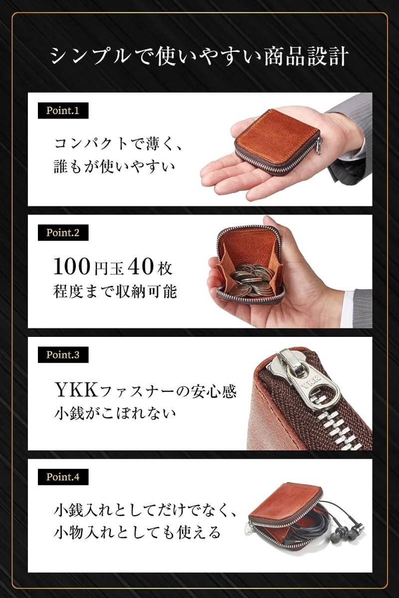トレンドに左右されない ミニ財布 ブラック コインケース 小銭入れ 小物入れ YKK 大人感 エイジング 一粒万倍日 お洒落 高級 本革 財布1