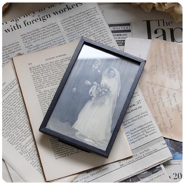 イギリスから直輸入した古いフォト フレーム/写真立て。ガラス縁にチップがござますがフレームに収めると隠れます。
