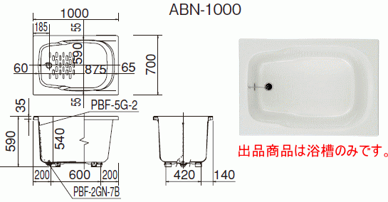 グラスティN浴槽 1000サイズ エプロンなし ABN-1000