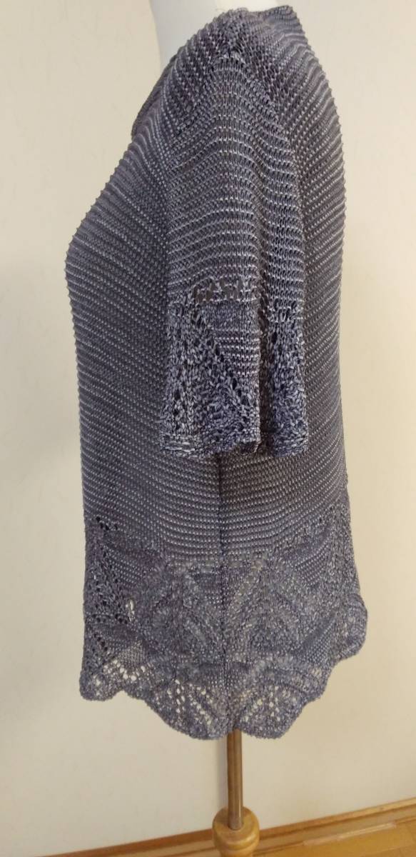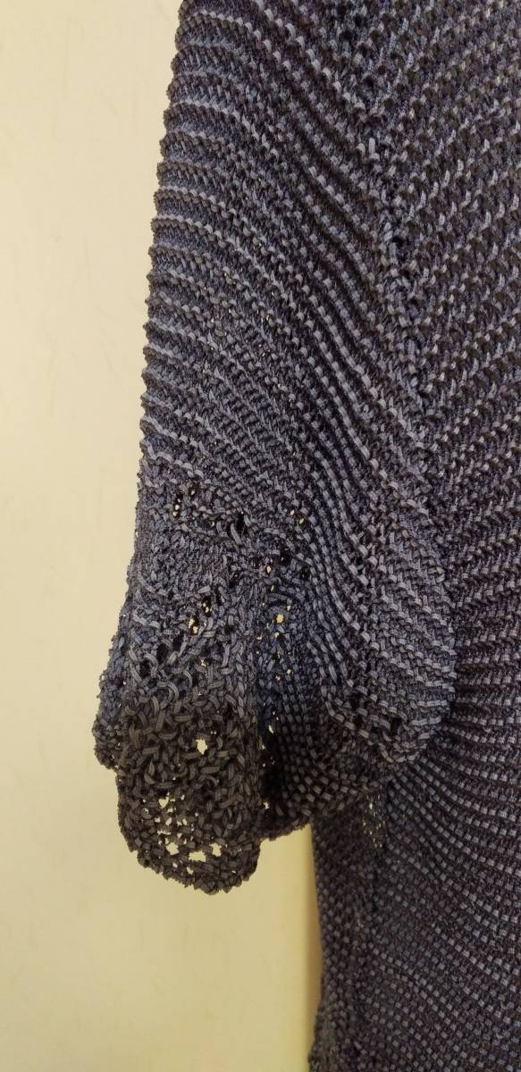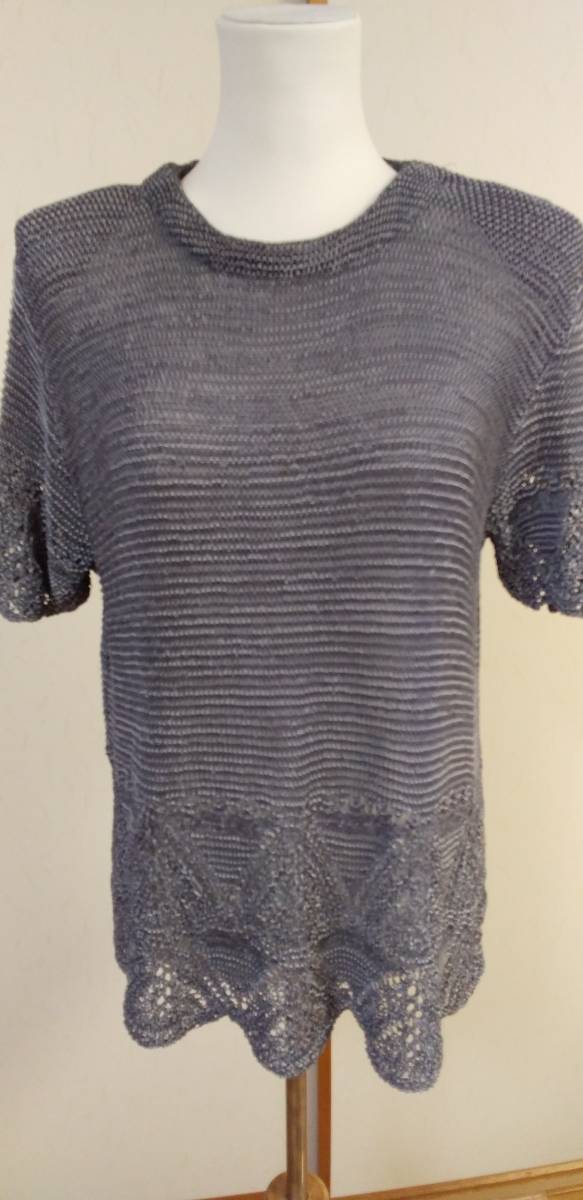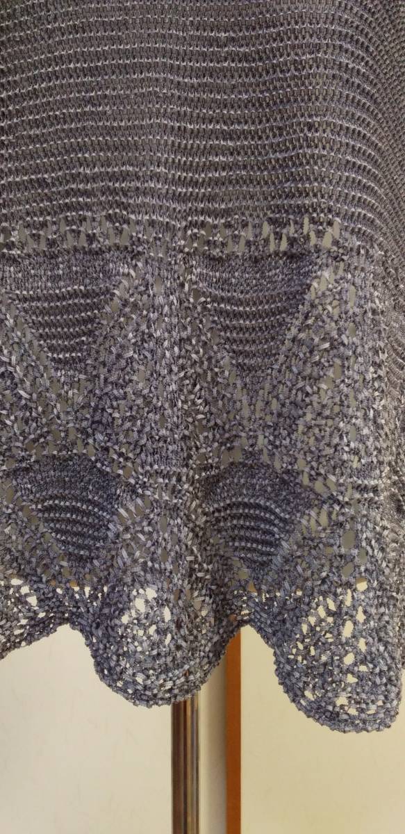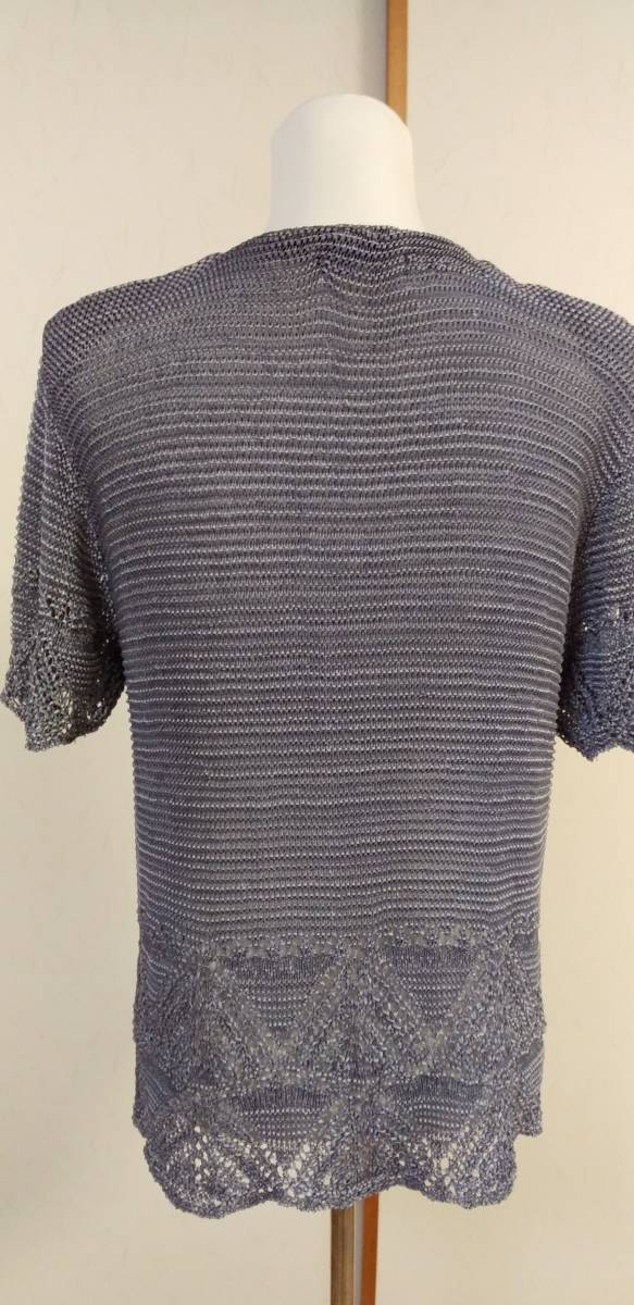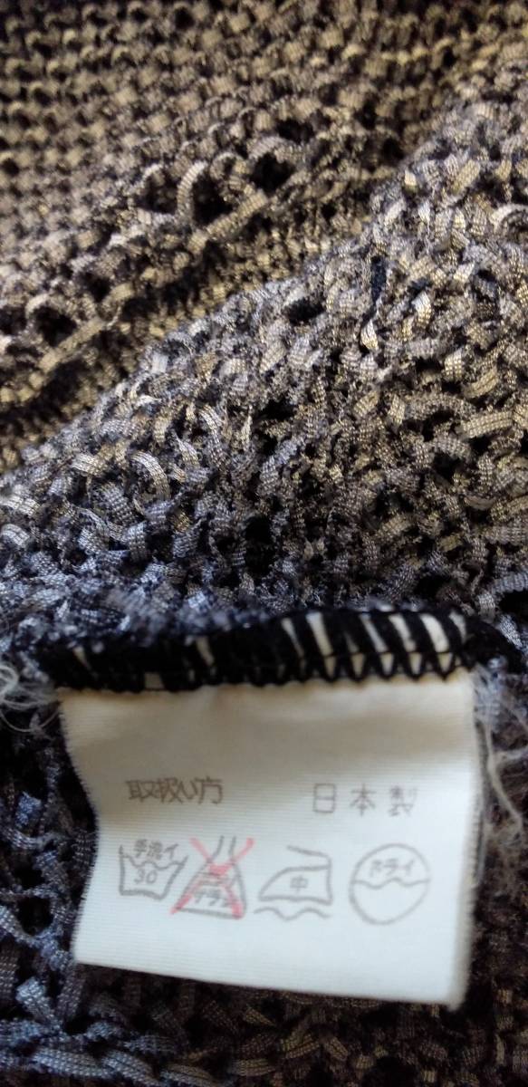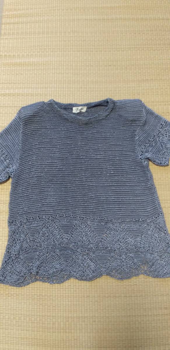 美品 リボン風レース編み カットソー グレー フリーサイズ