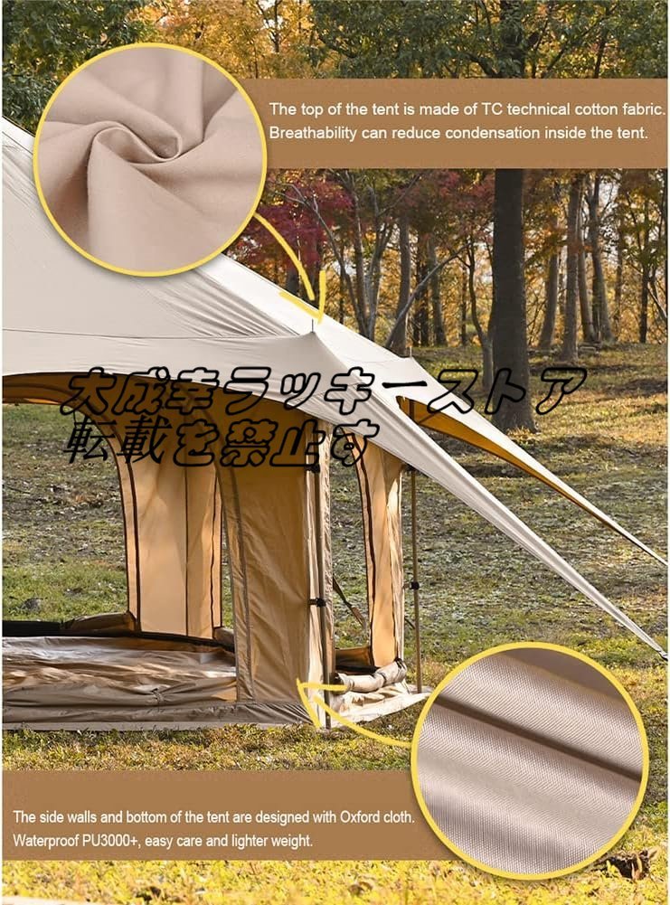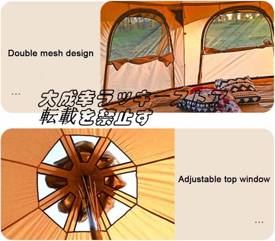 品質保証 二重層大型防水ティーピーテント 8-10 人ティーピーキャンプテントコットンテントピラミッドパオテントマルチプレイヤー F1466