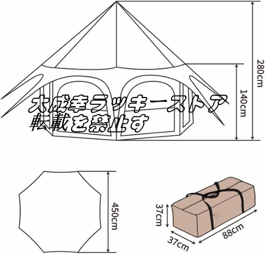 ★サイズ:拡張サイズ:450 * 450 * 280cm、折りたたみサイズ:88 * 37 * 37cm、重量:約23.5kg。