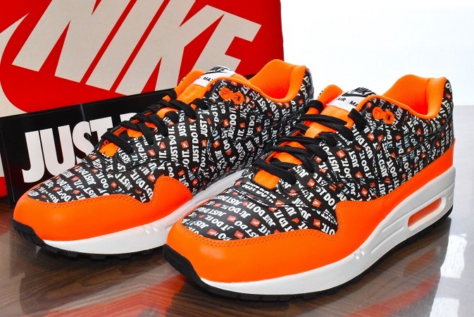 NIKE ナイキ AIR MAX 1 PREMIUM エアーマックス1 プレミアム 「JUST DO IT」 30th メンズ ローカット スニーカー/シューズ【ブラック×ホワイト×オレンジ系/サイズ26cm】です。