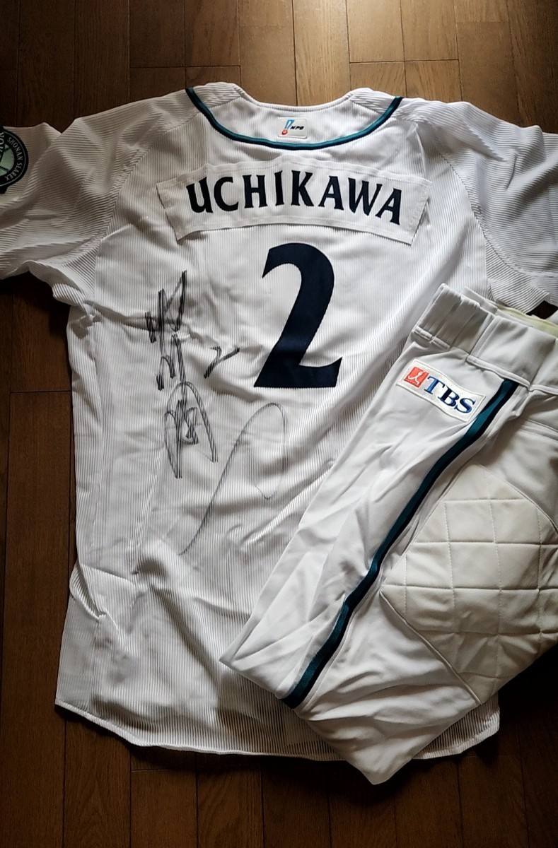 横浜 湘南シーレックス 2 内川聖一選手 2010年 実使用 直筆サイン入り ホームユニフォーム上下です。