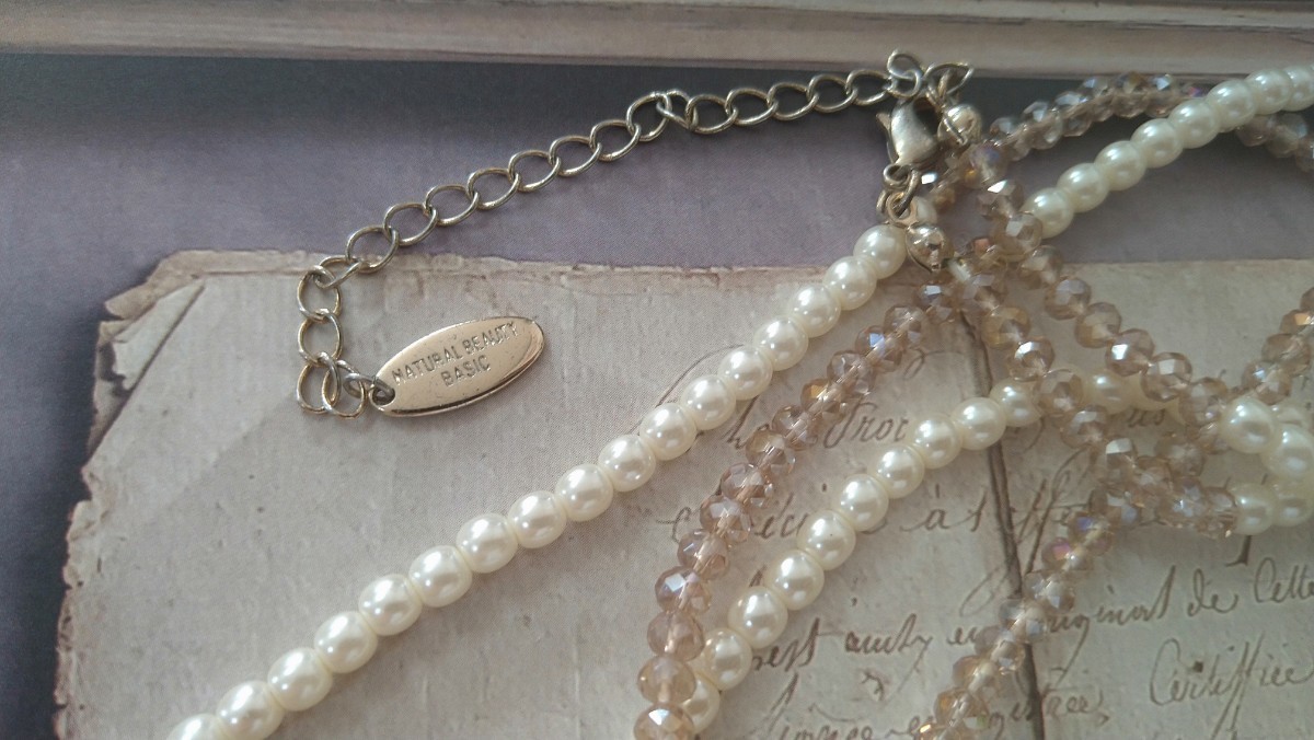 NATURAL BEATY BASIC ナチュラルビューティーベージック パールビーズ×クリアベージュビーズ・スーパーロングネックレス | |||