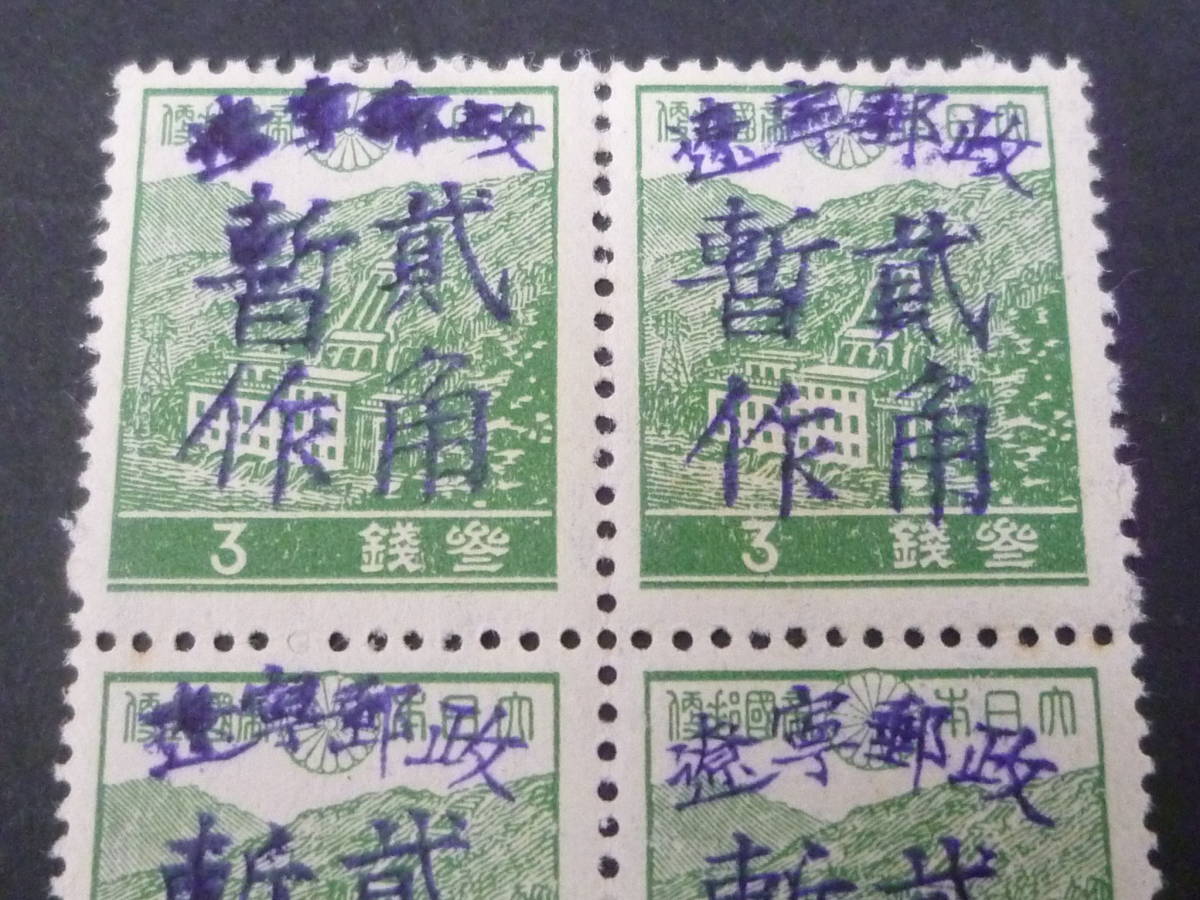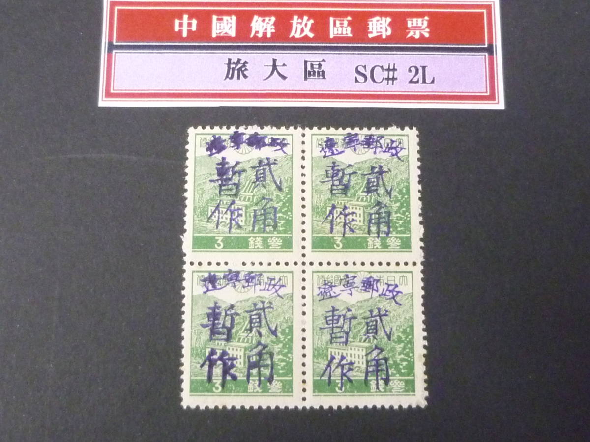 24 A №6 中国解放区切手 旅大区 1946年 SC#2L3 遼寧郵政手蓋改値 昭和切手加刷 20f/3s 田型 未使用NH・VF 【SC評価 $80】