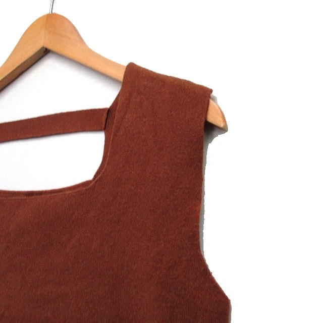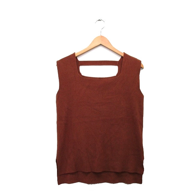パーソンアンドピープル person&people ニット セーター ノースリーブ スクエアネック シンプル F ブラウン 茶 /KT26 レディース
