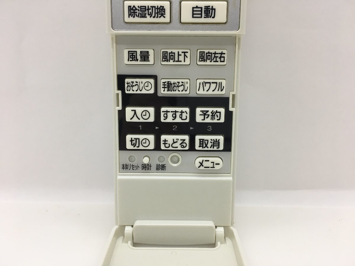 (エアコンリモコンの場合、正面からだとディスプレイ表示が薄い仕様のものもございます。不具合ではございません。)