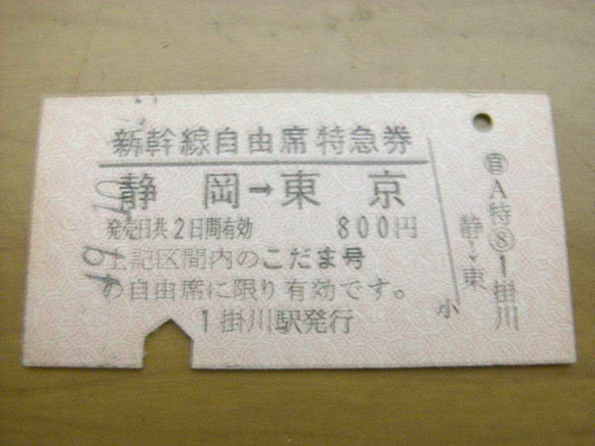 新幹線自由席特急券 静岡→東京 昭和49年10月11日発行 掛川駅発行
