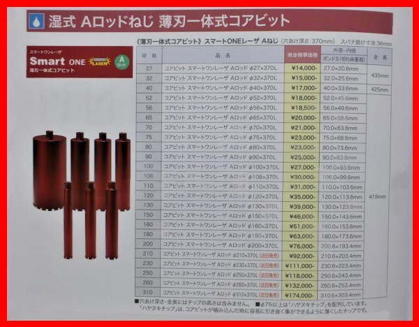 ★新品★薄刃 52φ ◎Aロッドネジ ★コンセック Smart One レーザー コアビット /// 日立 マキタ シブヤ コンクリートカッタ- コアドリル