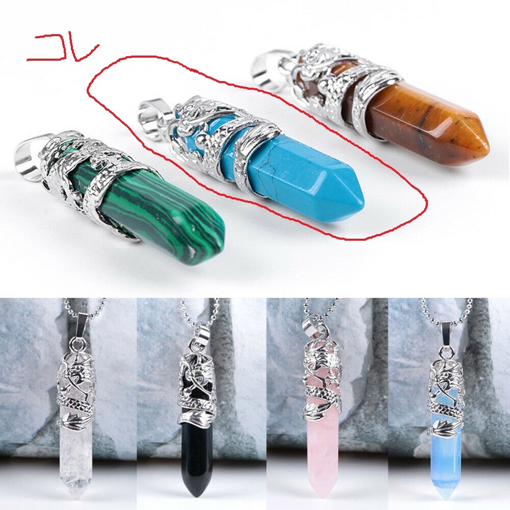 | 商品サイズ | ペンダントトップは43×11mmです。六角柱の天然石です。重さ約11グラム。チェーンの長さ約47センチです。 |