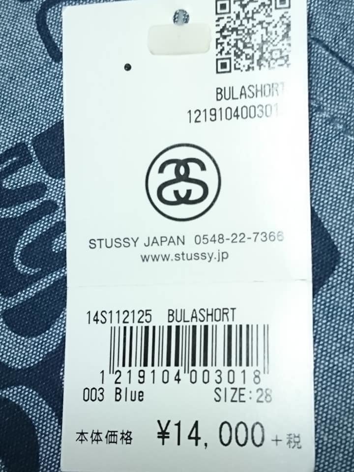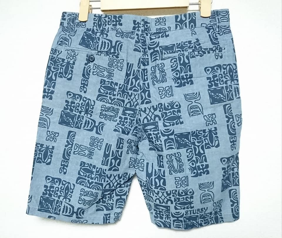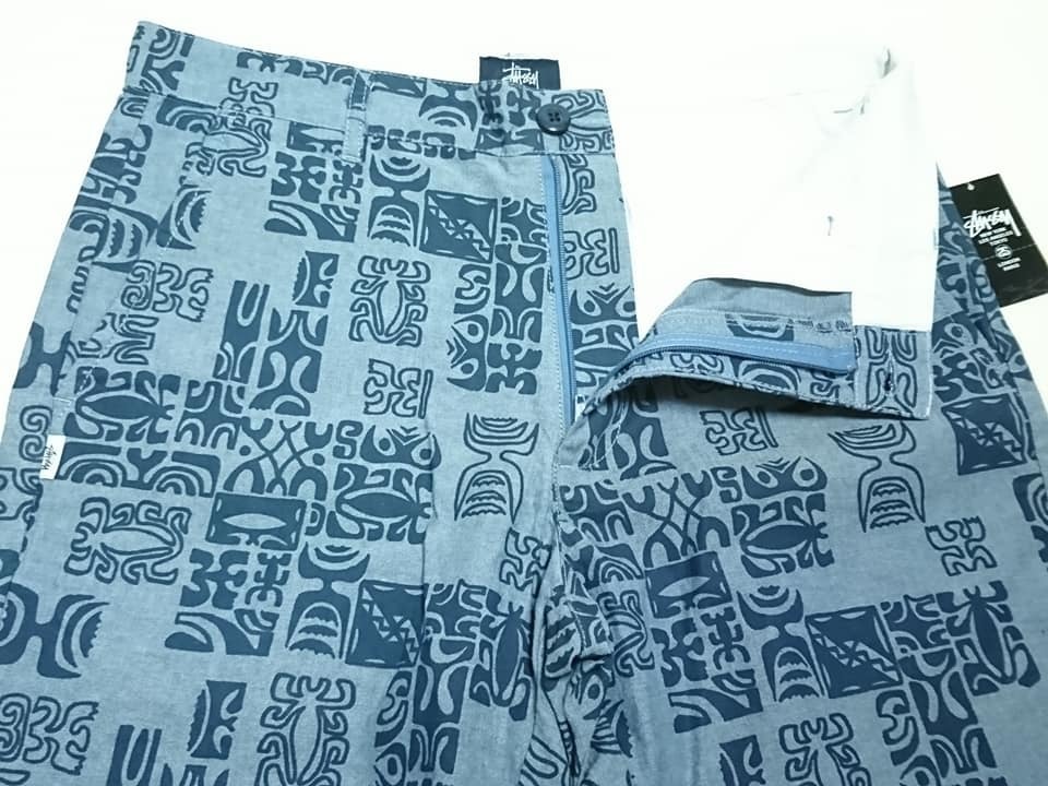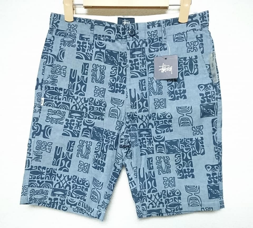 新品タグ付き!希少レア!2014年発売!定価¥15400!STUSSY ステューシー/幾何学模様エスニック総柄ハーフパンツ 28 ブルー/青