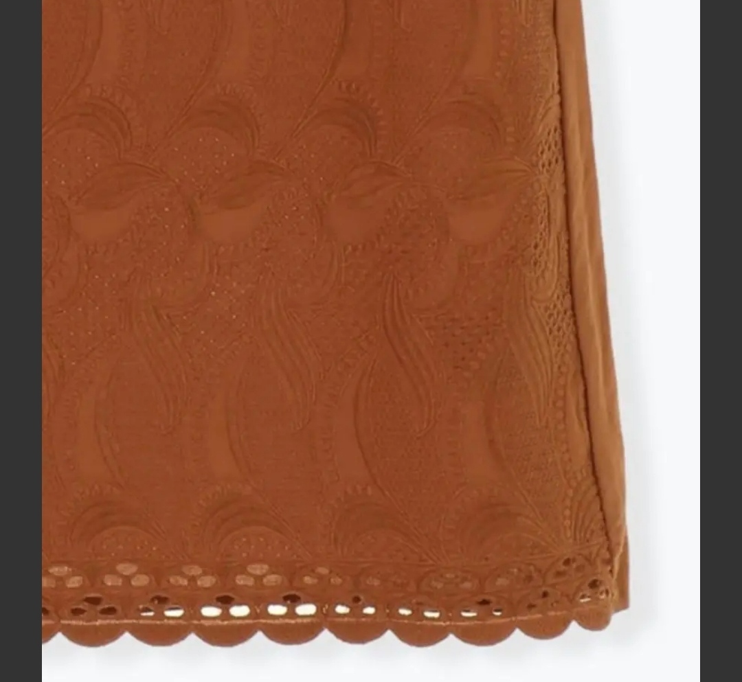 全面に入った表情豊かな刺繍がエレガントなコーデに導きます。スイートなスカラップのヘムラインで、さりげなく華やかさをアップ。
