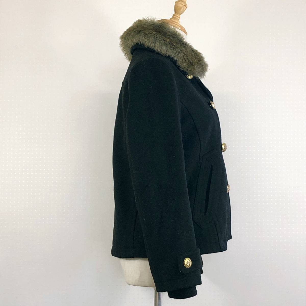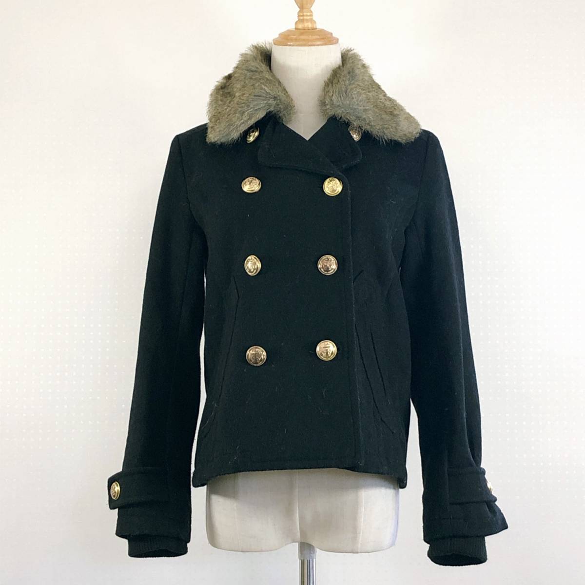 Y0059 earth music&ecology アースミュージック&エコロジー レディース アウター ピーコート 長袖 クリーニング済 S ブラック 黒 毛素材含