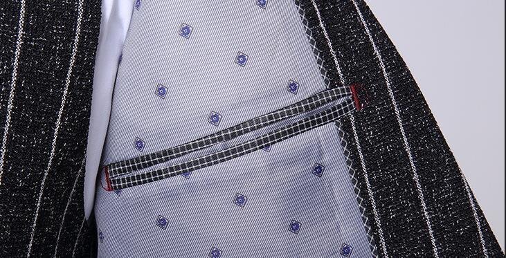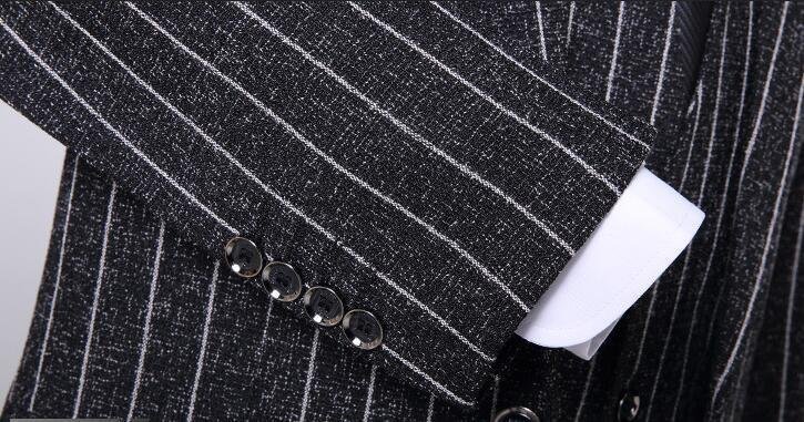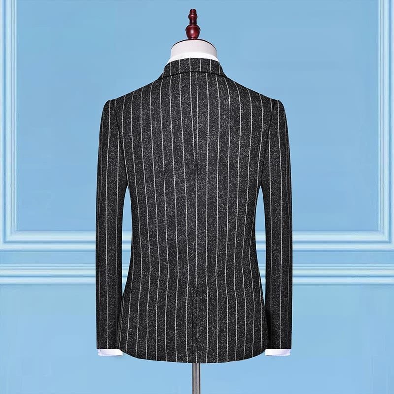 ビジネススーツ メンズ スーツセットアップ フォーマルスーツ 3点セットカジュアルスーツ 通勤結婚式イベントボーダー柄M~4XL グレー