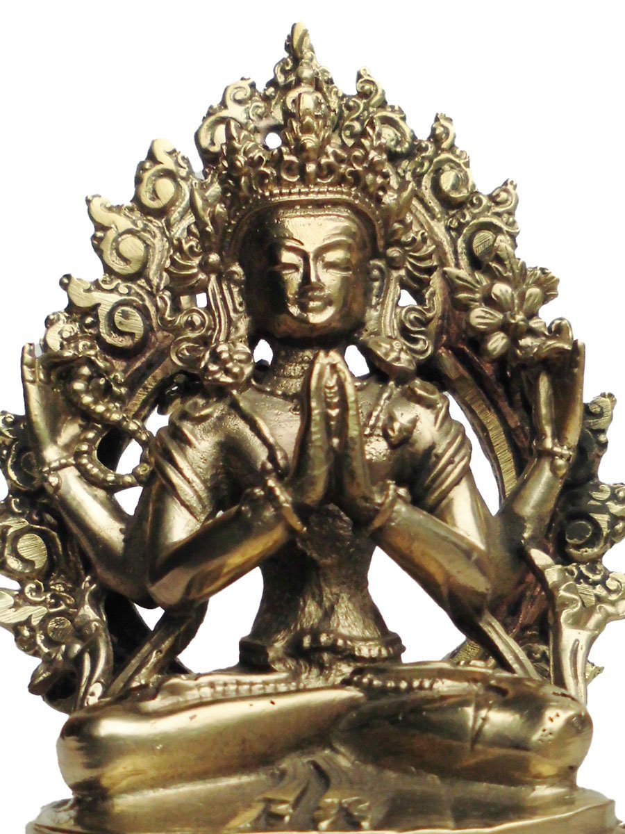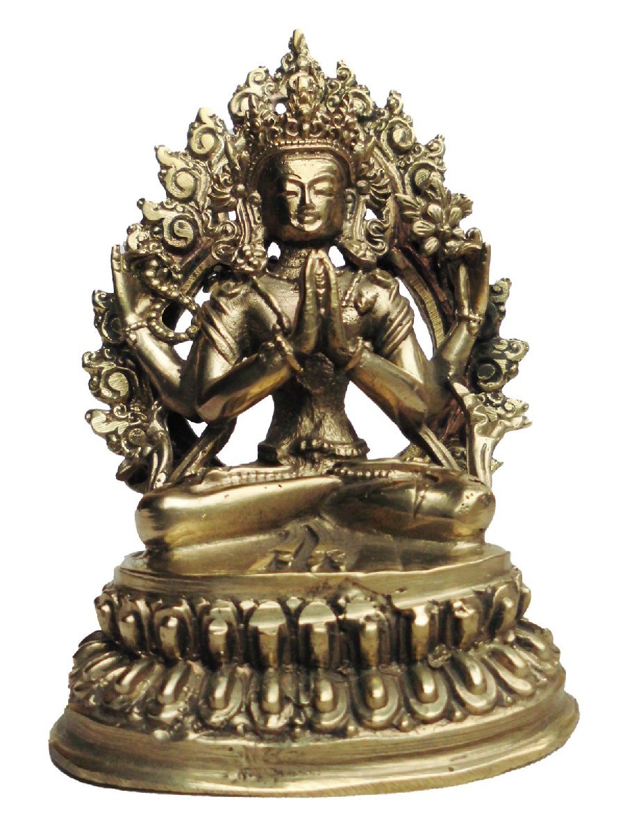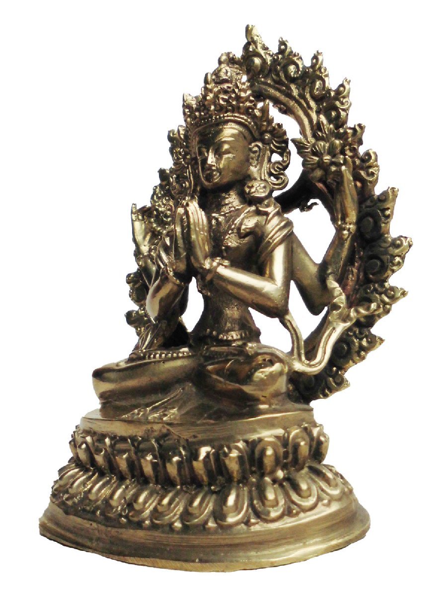 ■☆アジアン雑貨 ネパール仏像 真鍮製 六字咒観音菩薩 (BS-34)