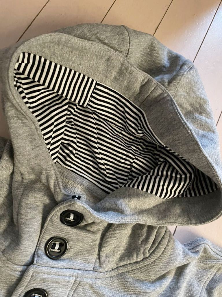 シップスオリジナルのレイズドネックパーカです。生地に張り感が出るようシルケット加工を施した裏毛スウェットを使用しています。特徴的なレイズドネックデザインが目を引きます。フード裏には別生地を配し、マリンテイストに仕上げました。 ボタンの中ジップアップ、テープデザインで前を開けても閉じてもカッコ良く見えるデザインです。
