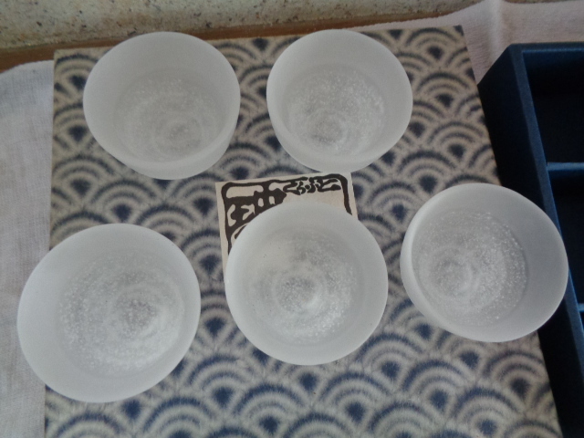 BYRON-バイロン ガラス器/玻璃 吹雪/ガラス製 煎茶湯呑5客セット/HIROTA GLASS TOKYO-広田硝子㈱/箱入未使用美品-湯呑5客のみ/