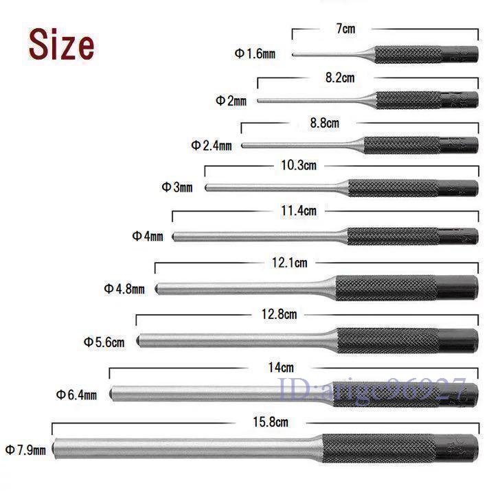 ☆【商品説明】直径1.6㎜?7.9㎜までのピンポンチ、9本セットになります。 専用の収納ケースも付属しており持ち運びや携帯に便利です。 自動車、バイク、オートバイ、農機具、機械、腕時計等のメンテナンス、修理、レストアなどでのピン抜き作業など幅広くお使いいただける工具です。 センターポンチは耐久性、耐摩耗性に優れたスチール製で、グリップ部分には滑り止めの加工が施されていて効率的に作業が可能です。