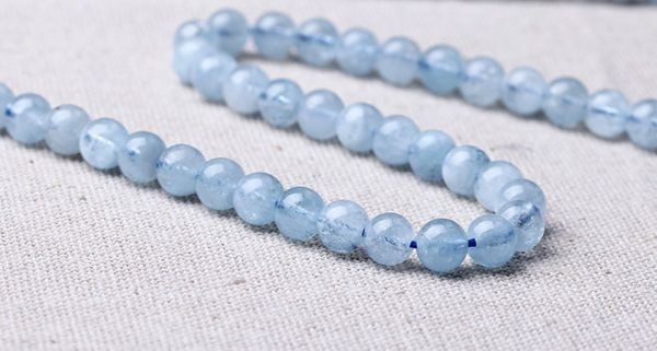 [EasternStar] 海外発送 5A 冰種 アクアマリン 藍柱石 藍玉 Aquamarine 玉径7.5mm 手作り 1連売り 長さ約40cm