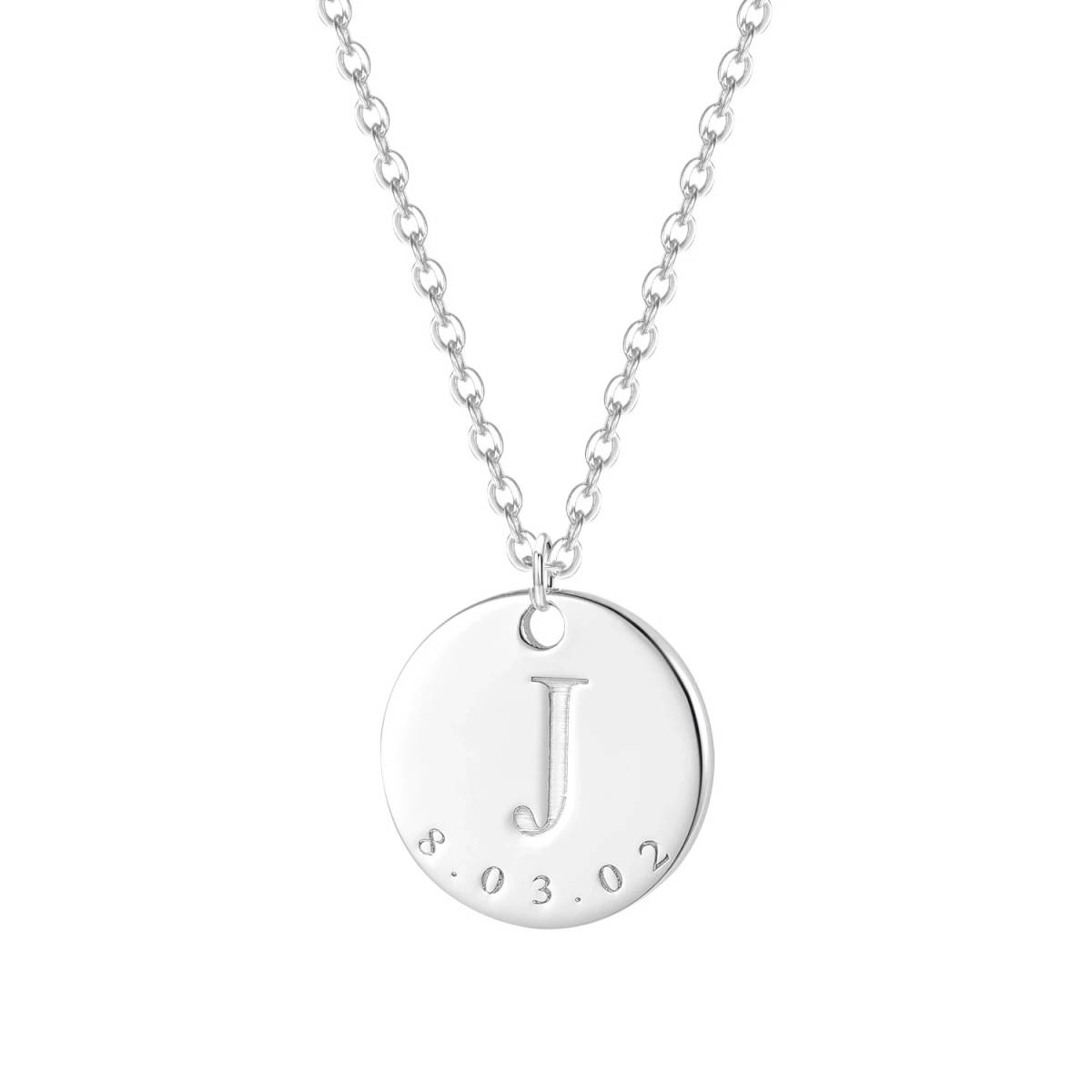 シルバー925の高品質なネックレスに、あなたの特別な一文字を彫り込みませんか?このネックレスは、シンプルながらも洗練されたデザインで、そしてあなたらしさを引き立てること間違いなしです。ご希望のイニシャルをペンダントトップの真ん中に入れ、その下には特別な日やメッセージを記入することもできます。