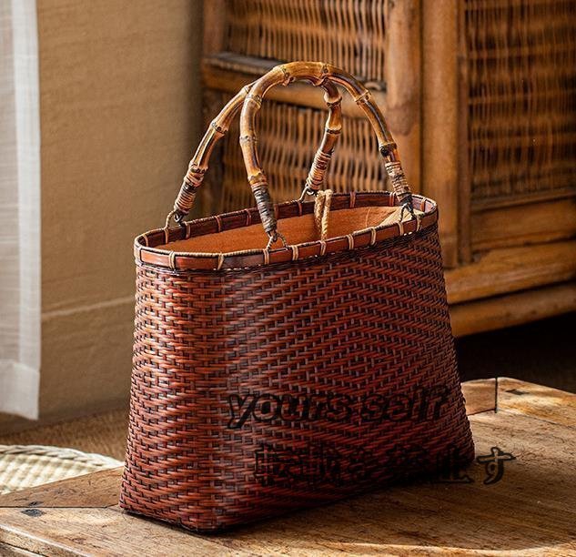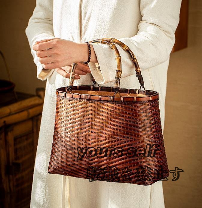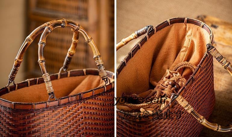 高品質実用 みバッグ 小物入れ籠職人手作り竹編 ハンドバッグ 内布付き
