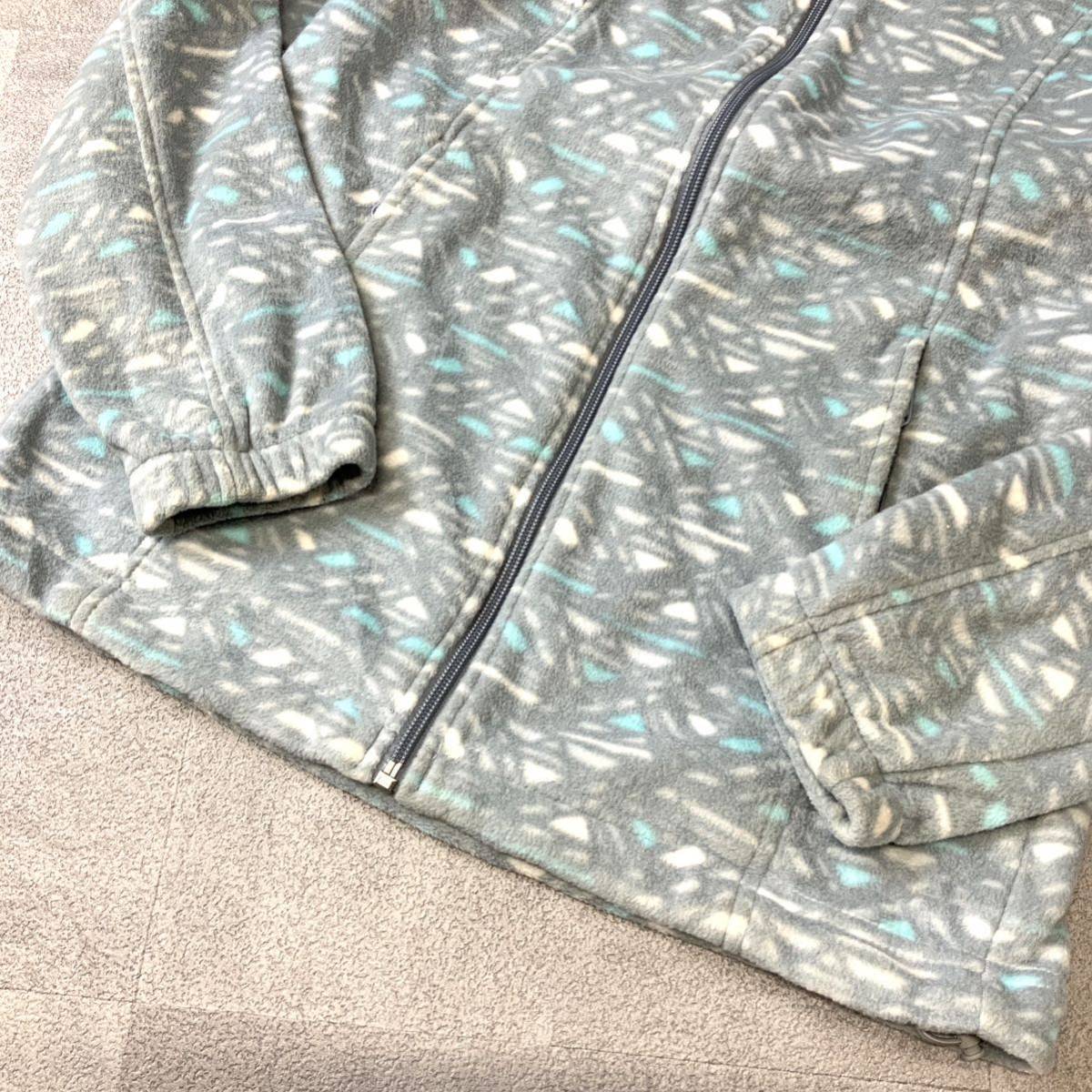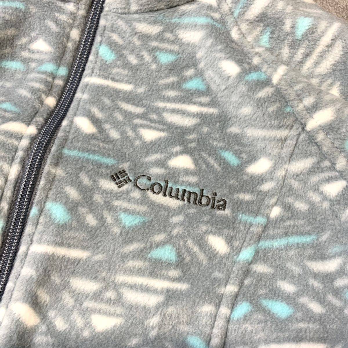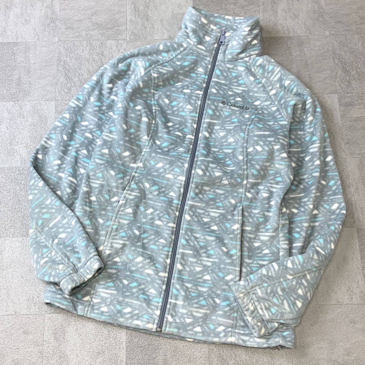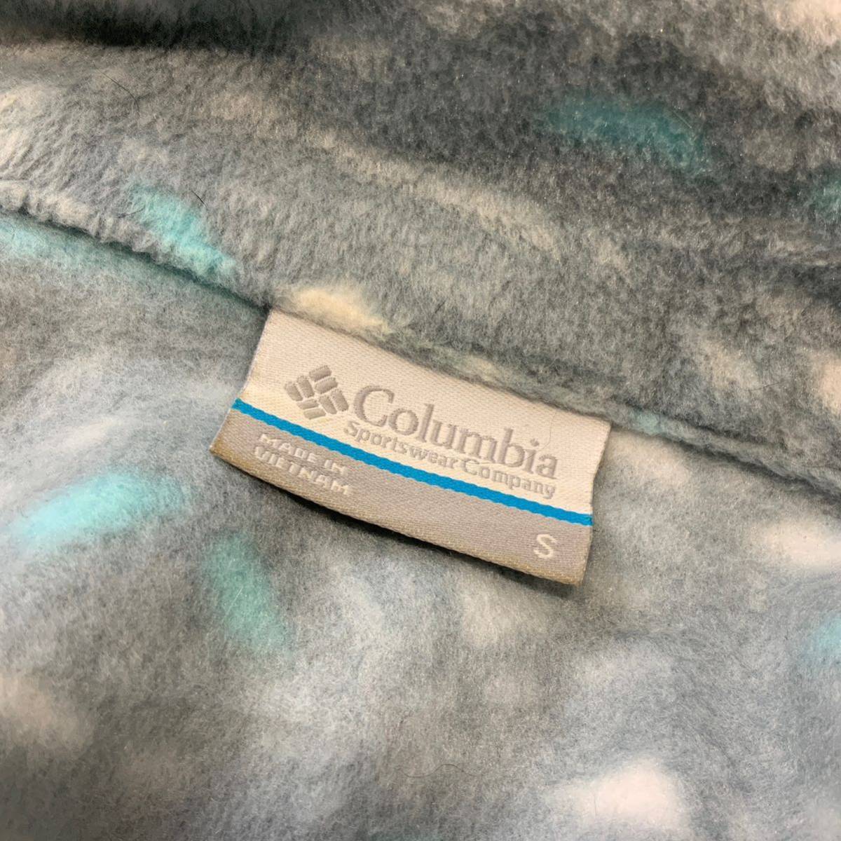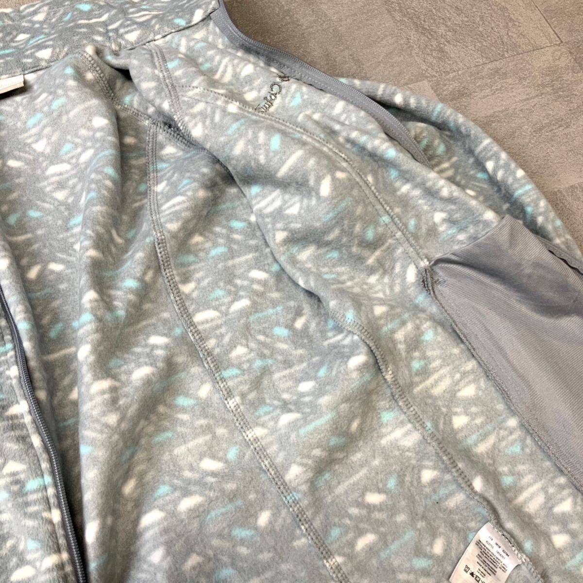 USA規格 Colombia コロンビア 総柄 フリースジャケット フルジップ メンズ Sサイズ グレー ライトブルー アウトドア キャンプ