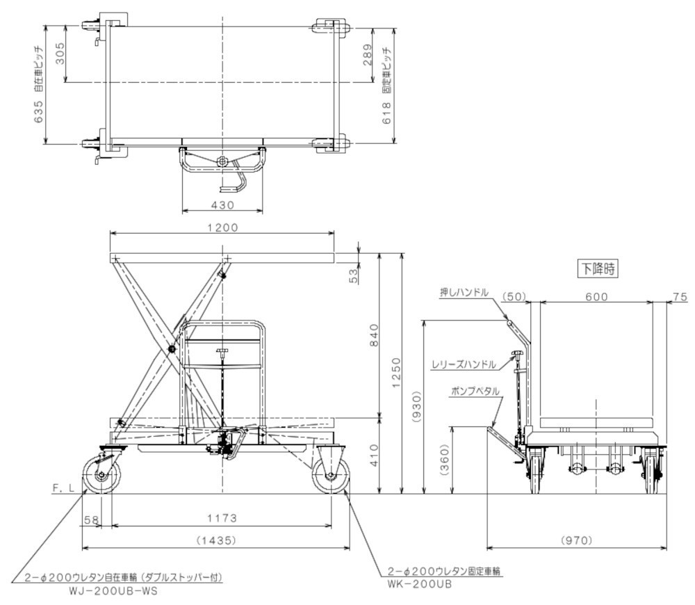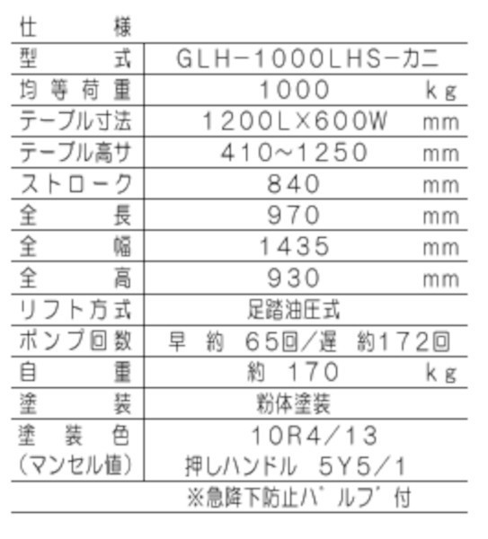 また、テーブルの降下はJIS規格に基づき最大均等荷重を負荷後15分間放置してストロークの2%以下に抑えています。