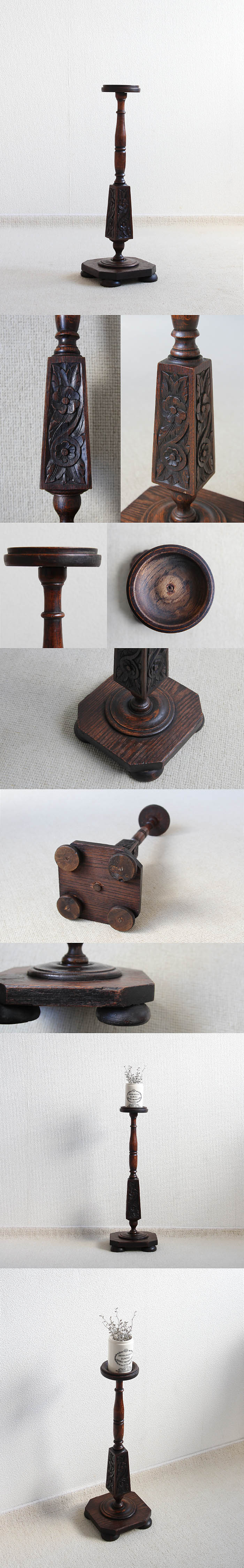 イギリス アンティーク スモーカーズスタンド 木製 彫刻 オーク材 家具「灰皿スタンド」V-942