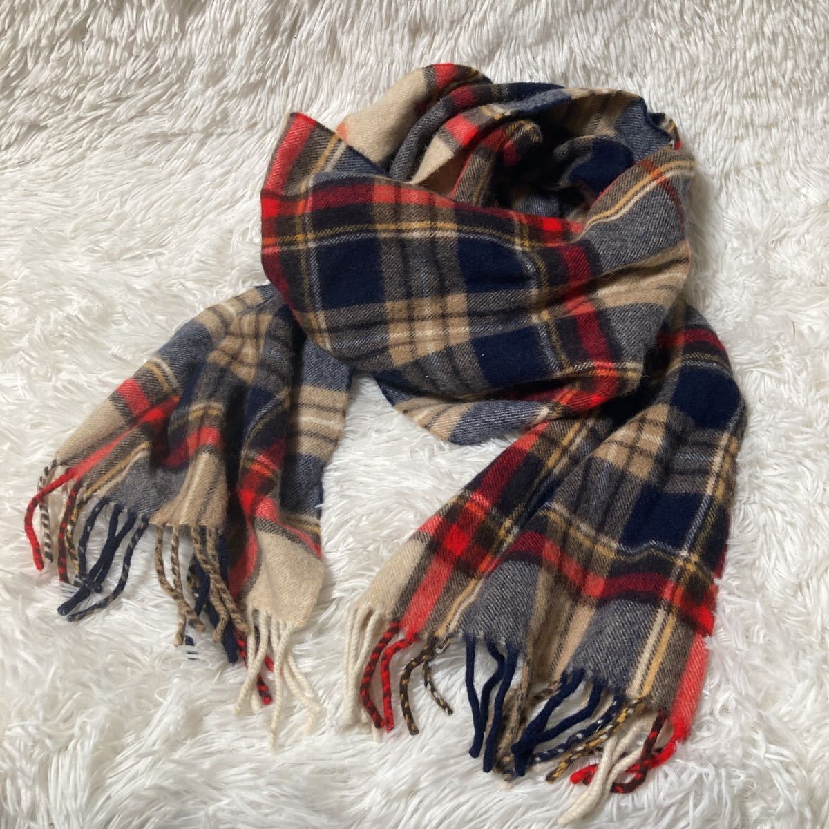 アンゴラ×ラムウールの上質な肌触りのチェック柄マフラーです!