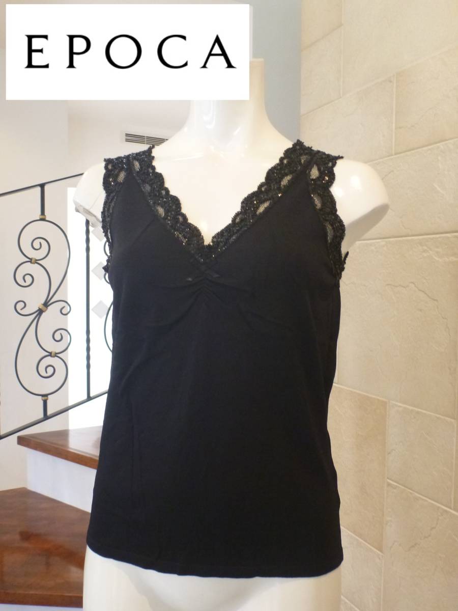 4万 美品 EPOCA エポカ★黒 ブラック レース&スパンコール使い ノースリーブセーター 40 M相当