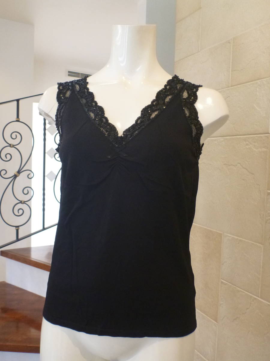 ◆黒 ブラック レース&スパンコール使い ノースリーブセーター