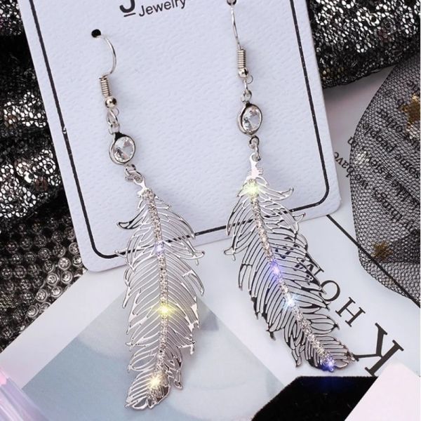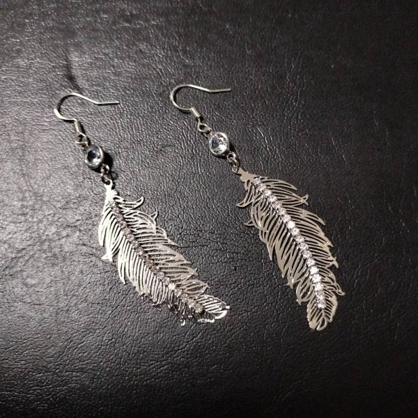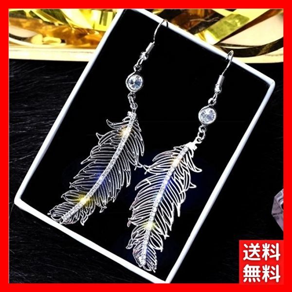ピアス シルバー cz 羽 フェザー シンプル フック クリスタル レディース 韓国 可愛い キュービックジルコニア ラインストーン キラキラ ステンレス ファッション 綺麗 パーティ ギフト プレゼント