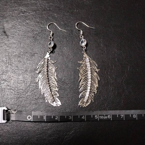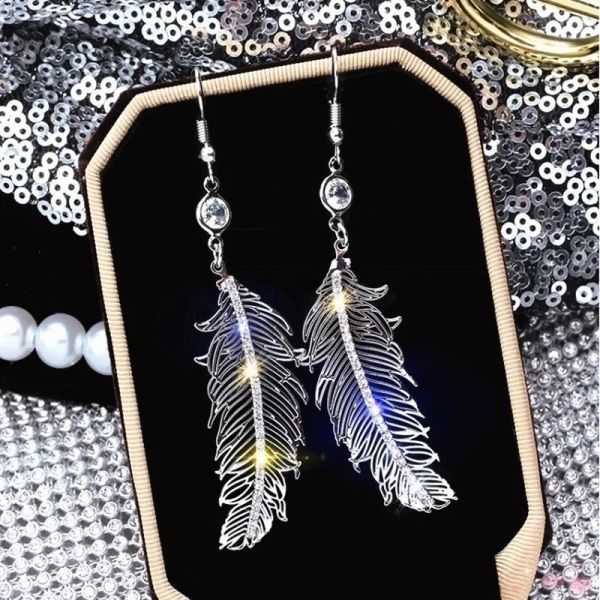 ピアス シルバー cz 羽 フェザー シンプル フック クリスタル レディース 韓国 可愛い キュービックジルコニア ラインストーン #C1898-2
