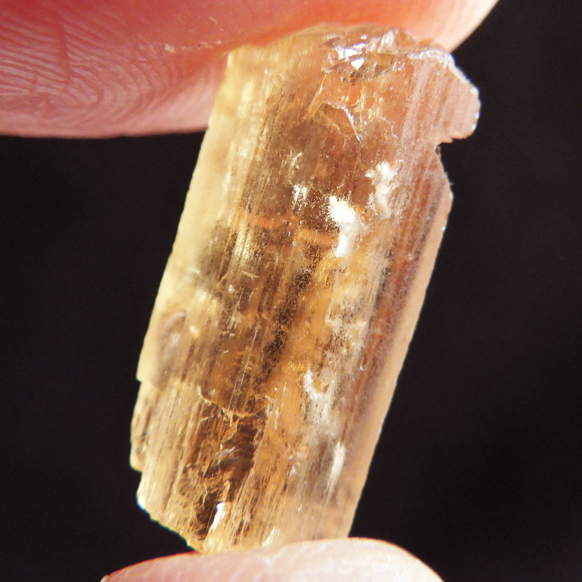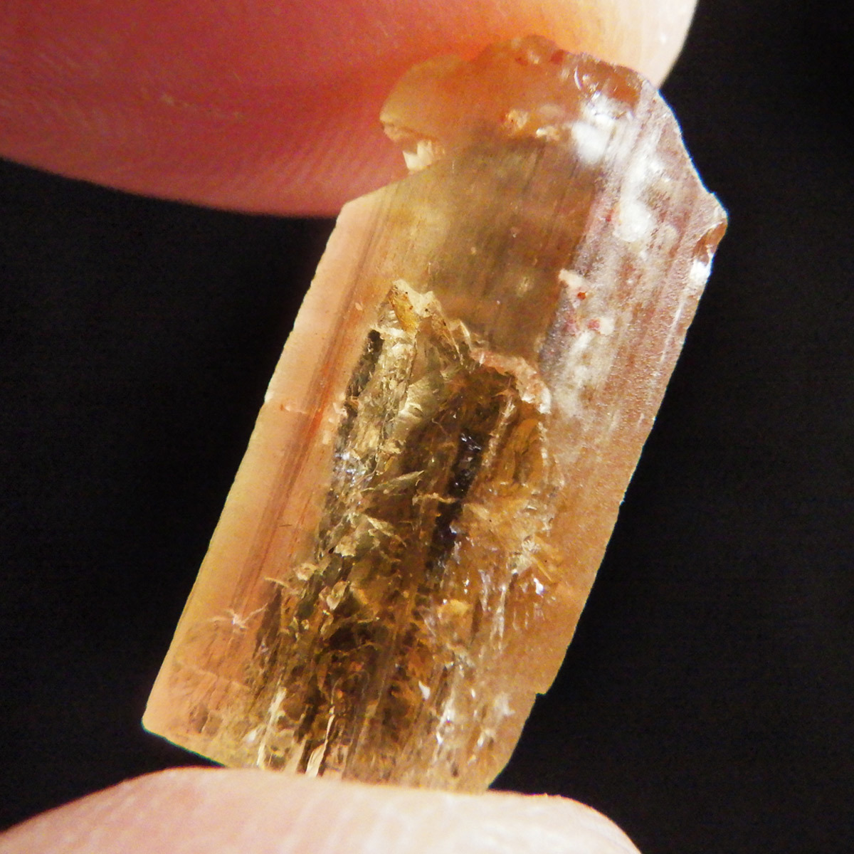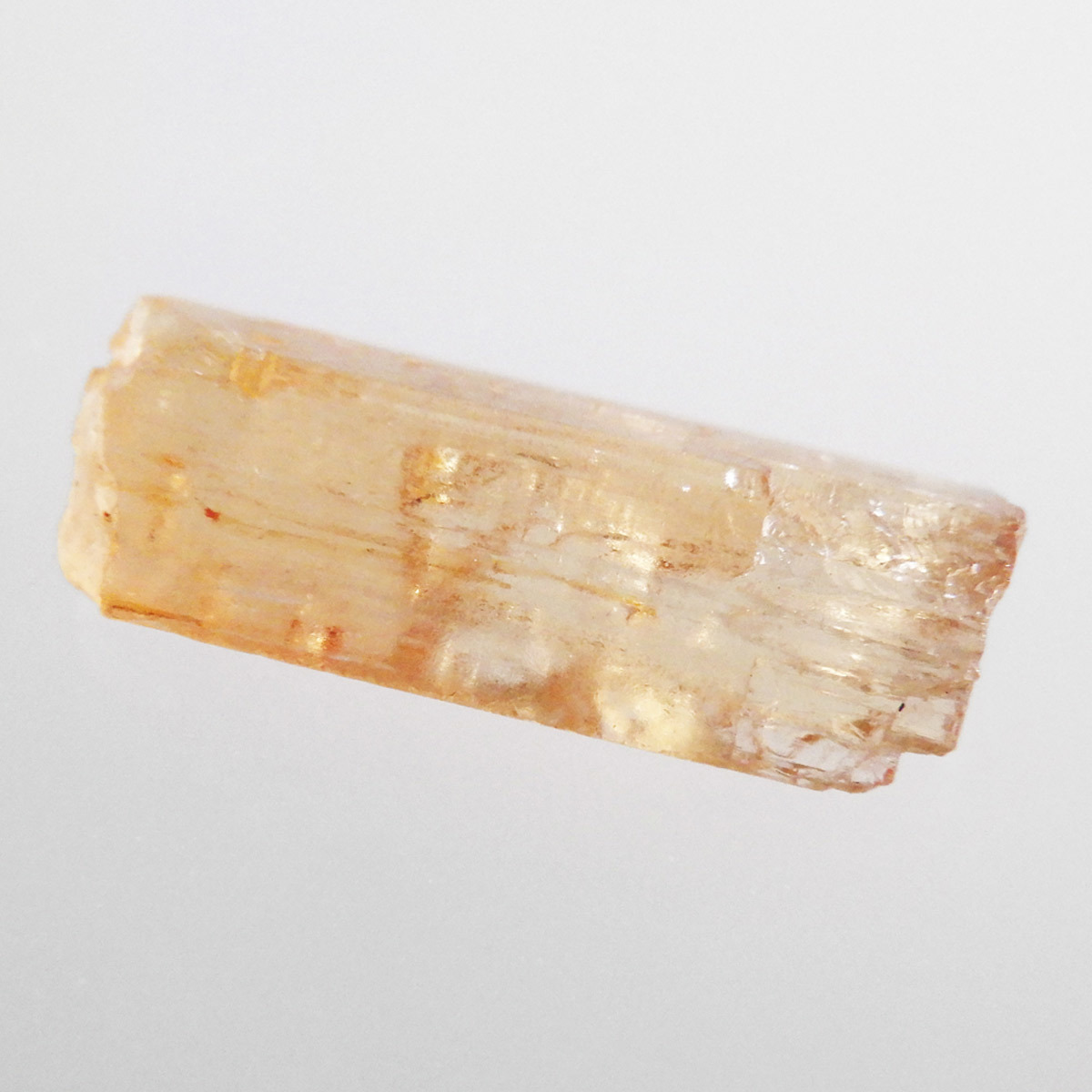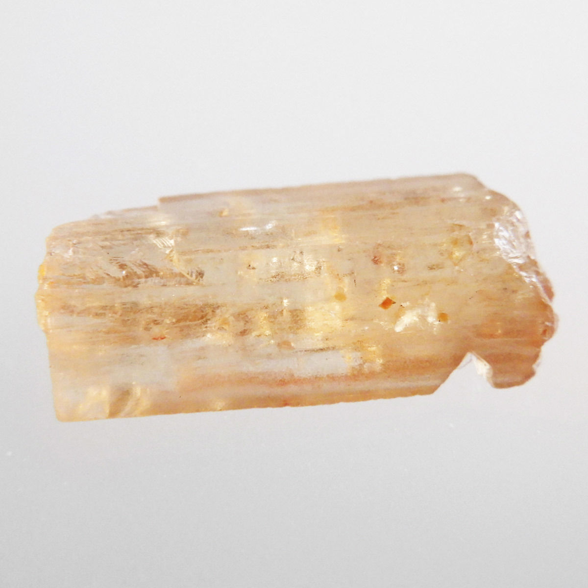 ブラジル産のインペリアルトパーズ結晶原石です。品質の良いものを厳選しております。透明度が高く、表面に縦の条線がはっきりと見られます。結晶は優しいオレンジーカラー、角度によってはキラりと光輝きます。