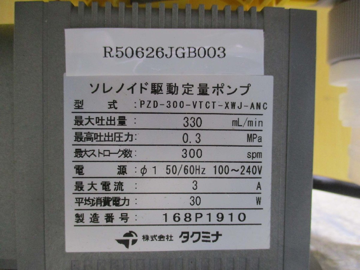 中古 タクミナ PZD-300-VTCT-XWJ-ANC 0.3MPa 330ml 3A 30W ソレノイド駆動定量ポンプ(R50626JGB003)
