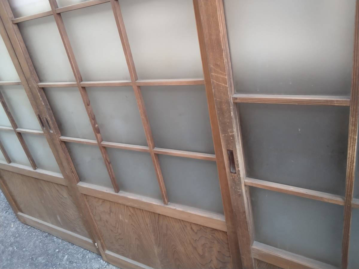 【商品説明】こちらの商品は、引き取り限定です。4枚セットになります。サイズは、ヨコ約71cm×タテ約173.5cm 経年による汚れ、傷、金具のサビ、スレ、小さい虫食い、古傷等ございます。神経質な方はご遠慮下さい。その他見落としがあるかもしれません。譲り受けたままの状態です。こちらは、引き取り限定です。発送はしておりませんのでお間違えのないようお願いします。その他建具やガラス戸等出品しておりますので宜しかったらそちらもご覧下さい。下記の注意事項をご覧になり同意の上の方のみ入札をお願い致します。【注意事項】※ 落札後のクレームや返品は、お受け致しませんのでご了承下さい。※ 落札後48時間以内にご連絡が取れる方のみ入札をお願い致します。取れない場合は、落札者の都合により削除させて頂きます。※ 新規の方の入札は、ご連絡されて下さい。入札をお断りさせて頂く場合がございますのでご注意願います。また評価の低い方やマイナスが多い方の入札は、こちらから削除させて頂く場合がございます。※ 経年による汚れ、小傷等ございますので細かい所が気になる方は、ご遠慮下さいませ。※ 気になる所や疑問点などございましたら必ず入札前に質問メールにてご質問されて下さい。※ 質問メールにメールアドレスや電話番号など記載されていた場合は、お答え致しません。(お答えした場合公開される為)※ 仕事の都合上ご連絡が遅くなる場合がございますのでご了承下さい。