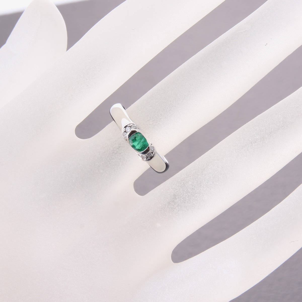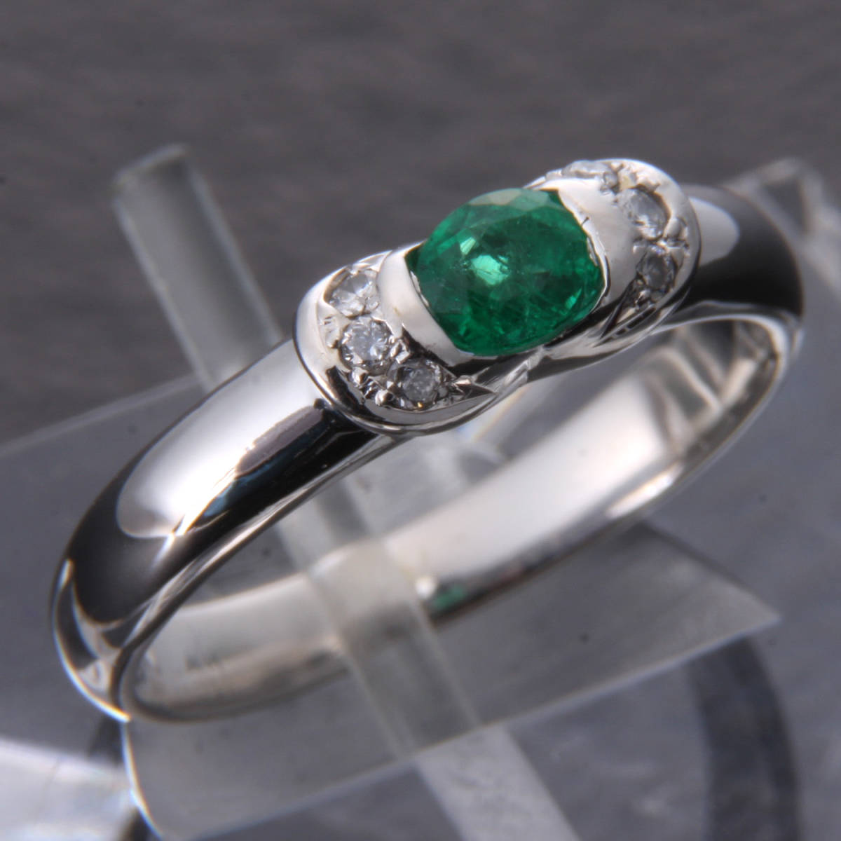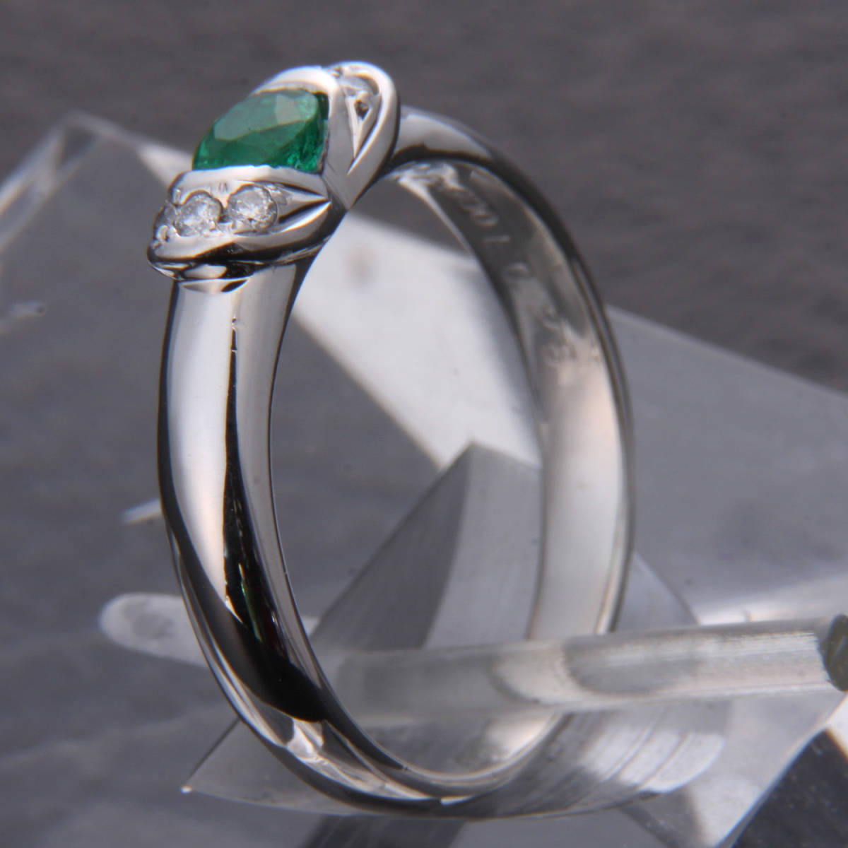 Pt900製、エメラルドとダイアモンドの9.5号リングです。