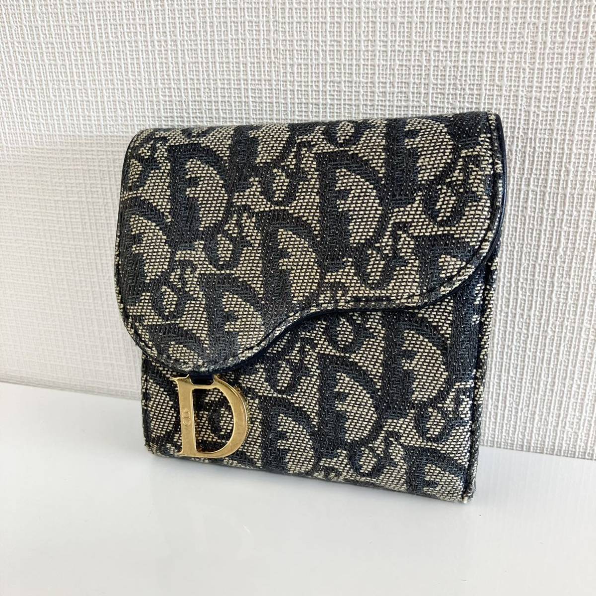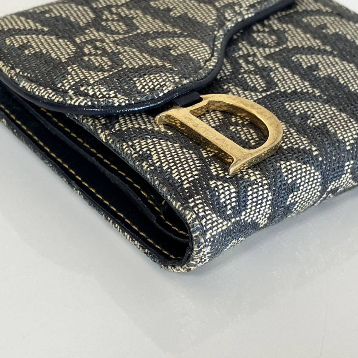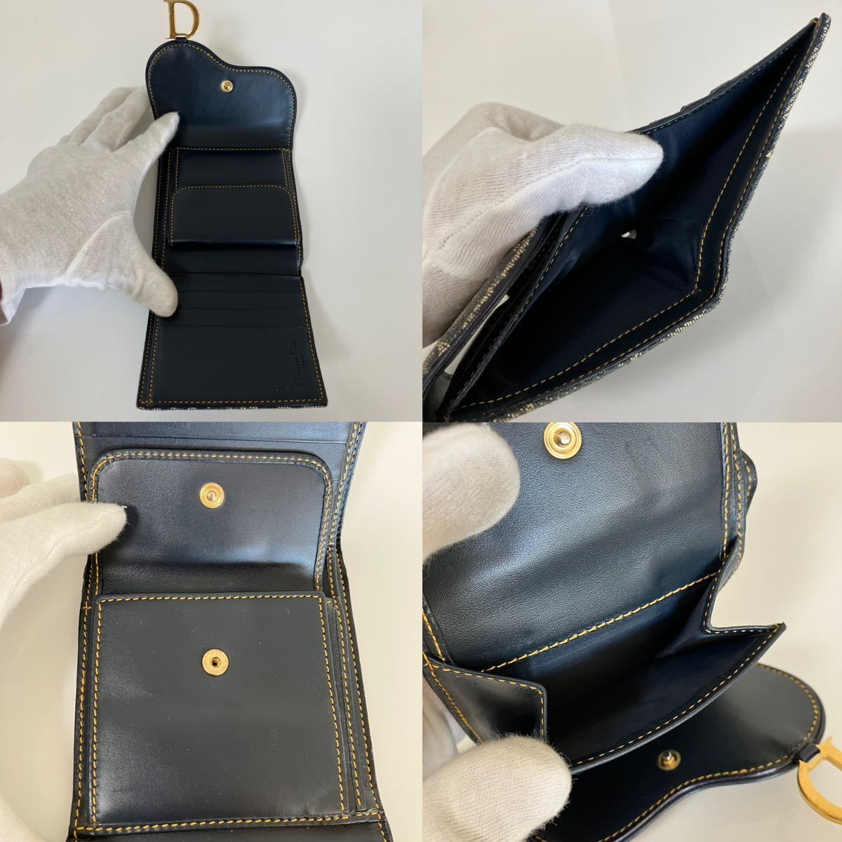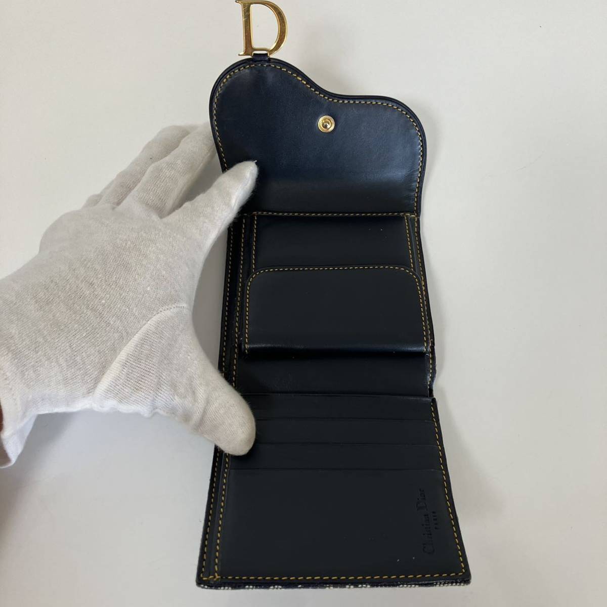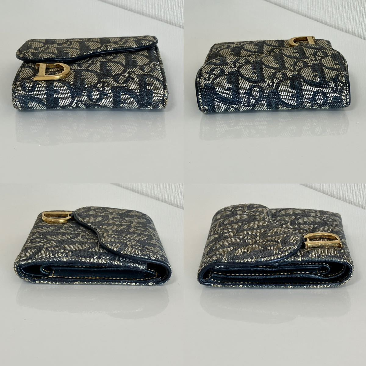 Dior クリスチャン ディオール サドル トロッター 二つ折り財布 ネイビー ゴールド金具