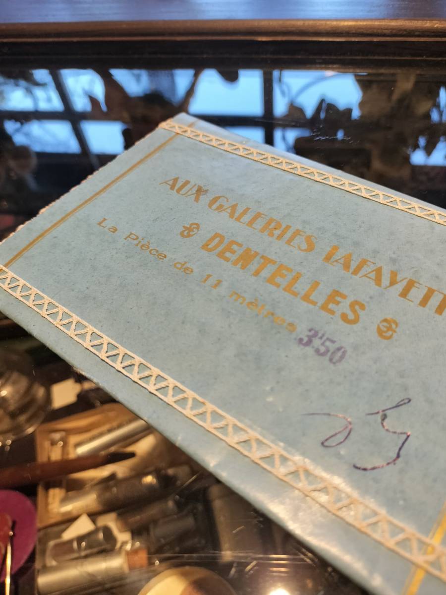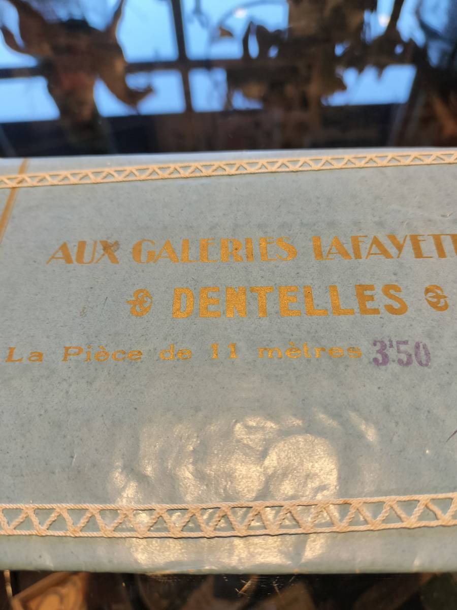 フランス アンティーク タグ ラベル付き Aux Galeries Lafayette Dentellesレースたっぷり幅5mm11M新品未使用!