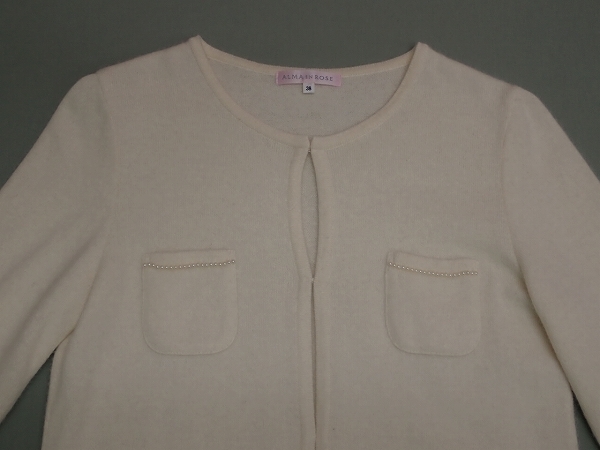 | ALMA EN ROSE アルマアンローズのカーディガンです。フロントはフック留め、ポケットにビーズデザインです。素敵にお使い頂けると思います。気になる方は是非ご検討下さい。 | |